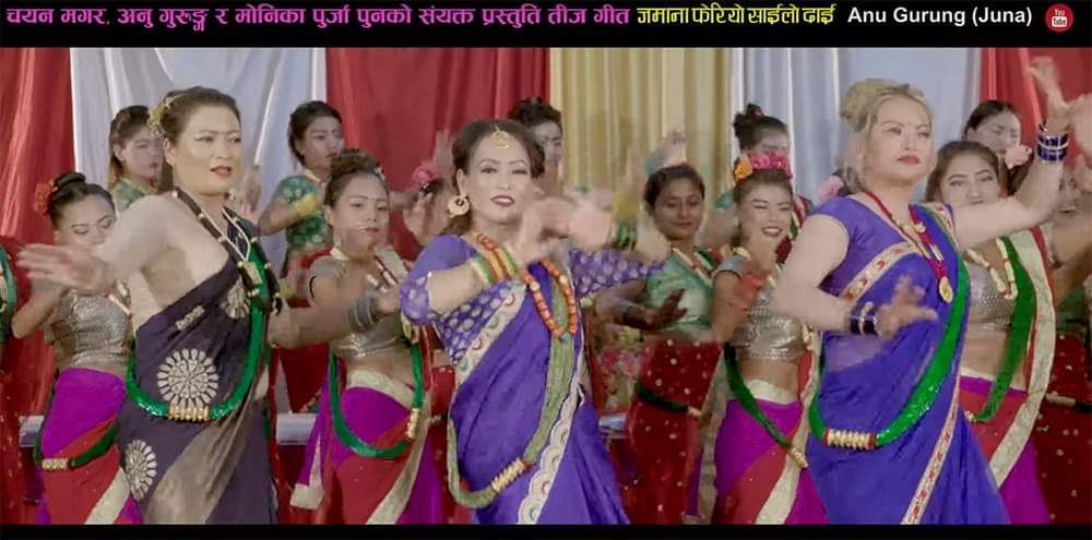काठमाडौं । हिन्दू नारीहरुको महान् पर्व हरितालिका तीज नजिकिँदै गर्दा तीज गीत पनि धमाधम सार्वजनिक भइरहेका छन् । यही भीडमा गायिकाद्वय चयन मगर, अनु गुरुङले संयुक्त रुपमा तीज गीत प्रस्तुत गरेका छन् । महिलाहरुको वर्षभरिको वेदना पोख्ने पर्वको रुपमा लिइने तीजलाई तीन चेलीले गीतिमाध्यमबाट समय परिवर्तन भएको सन्देश दिने प्रयास गरेका छन् । उनीहरुले गीतको बोल नै ‘जमाना फेरियो साइँलो दाइ’ राखेका छन् । गीतमा मोनिका पूर्जा पुनले पनि साथ दिएकी ५न् ।