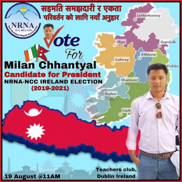 लण्डन । एनआरएनए आयरल्याण्डको अध्यक्षमा मिलन छन्त्याल निर्वाचित भएका छन् । हालै सम्पन्न एनआरएनए आयरल्याण्डको सातौं अधिवेशनले ३८ बर्षिय छन्त्याललाई अध्यक्ष बनाएका हुन् । सम्भवत: उनि एनसीसी मध्येका युवा अध्यक्ष हुन् । सो अधिवेशनले कार्यसमितिको उपाध्यक्षमा राम प्रसाद सापकोटा, अब्यदन पानी गौतम, महिला उपाध्यक्षमा सुनिता कार्की, महासचिवमा ओम अधिकारी, सचिवमा प्रेम प्रसाद घले, कोषाध्यक्षमा सुमन गुरुङ, सहकोषाध्यक्ष जयन्द्र राना निर्वाचित भएका छन् । त्यस्तै, सदस्यहरुमा दिपा राई, प्रकाश लामा, निशान्त शर्मा, पुस्कार बम्जन र बाबुकृष्ण कटुवाल निर्वाचित भएका छन् । साथै, महिला संयोजकमा अञ्जु काफ्ले, युवा संयोजक अनिस भण्डारी, महिला सदस्यमा करुणा थापा र आईसीसी सदस्यमा बिनोद कार्की चयन भएका छन् ।