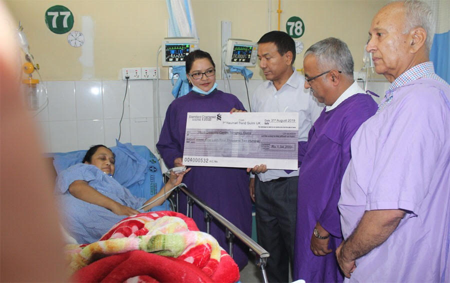 काठमाडौं । प्रथम नौमती बाजा गुल्मी समूह यूकेको पहलमा ट्युमर क्यान्सरको उपचार गराइरहेकी हेमा थापालाई १ लाख ४ हजार २ सय रुपैयाँ आर्थिक सहयोग गरिएको छ ।