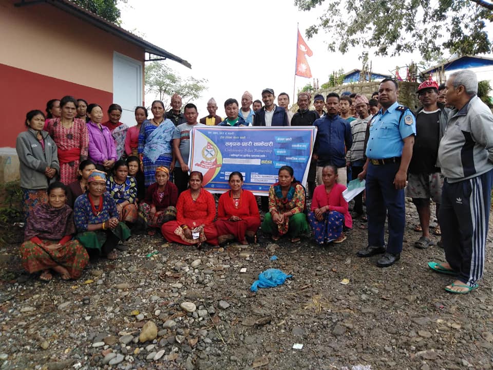 इलाका प्रहरी कार्यालय पञ्चकन्याका प्रहरी नायव निरीक्षक रामेश्वर सहनीको नेतृत्वमा सामुदायिक साझेदारी कार्यक्रमअन्तर्गत बिहीबार उक्त कार्यक्रम भएको हो । बिहान ११ बजे सुरु भएको कार्यक्रम १ बजेसम्म समापन भएको थियो ।