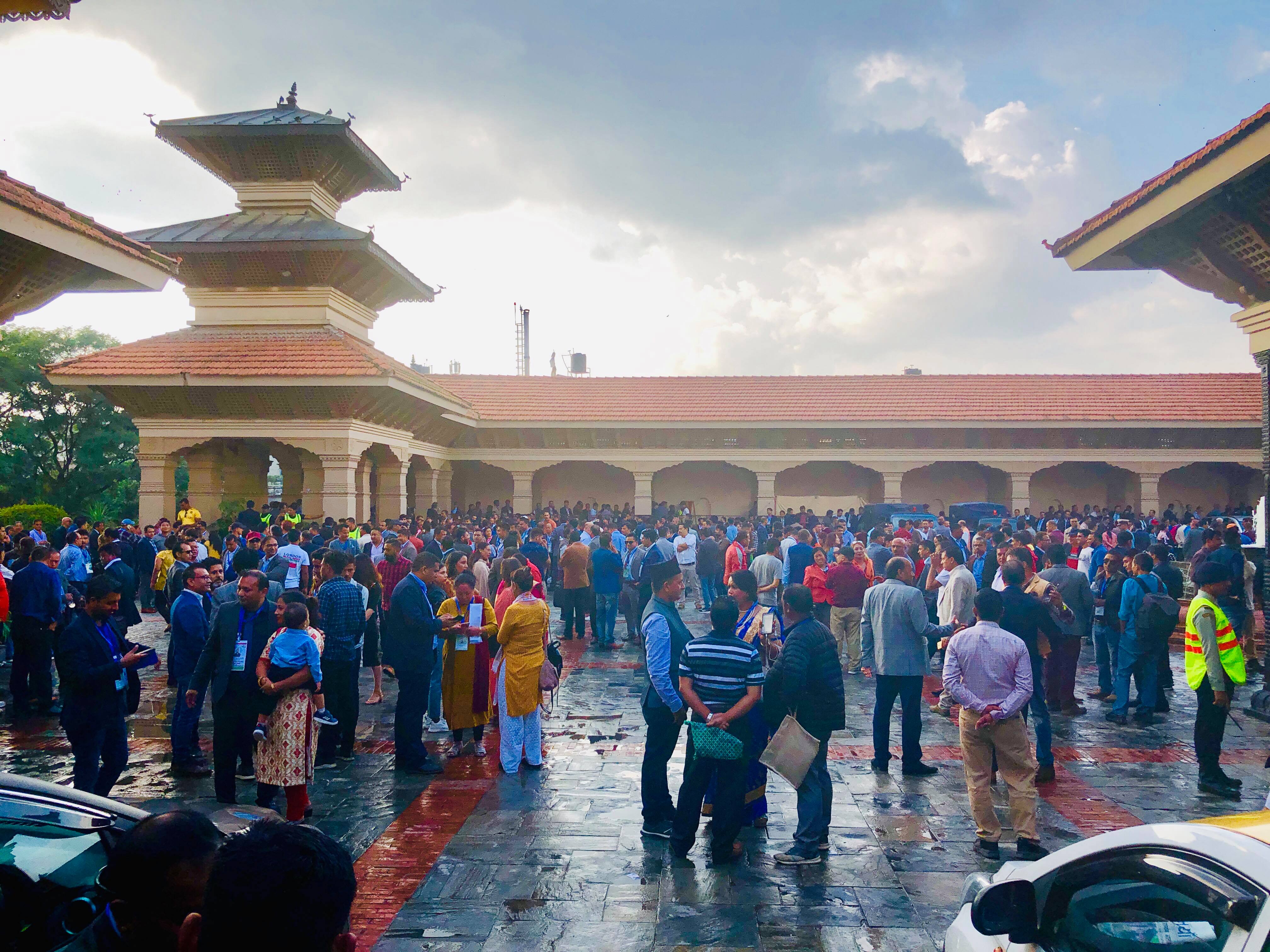 काठमाडौँ । गैरआवासीय नेपाली संघ (एनआरएनए) को नयाँ कार्यसमिति चयनका मतदान जारी छ । उच्च सुरक्षाबीच काठमाडौंको हायात होटलमा बिहीबार बिहान साढे १० बजेदेखि मतदान सुरु भएको हो । होटल परिसरमा मतदाताहरु लामो लाइन लागेको छ । बुधबार साँझ ८ बजे एकजना मतदाताले भोट हालेपछि भोटिङ मेसिनले काम नगरेको भन्दै स्थगित गरिएको थियो ।