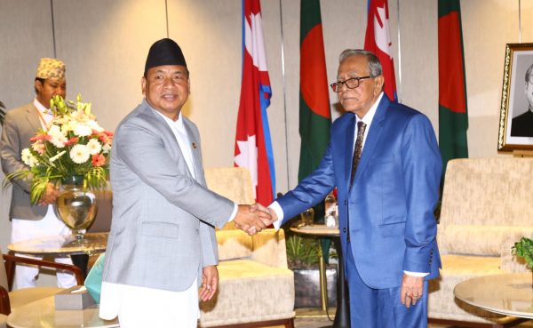 काठमाडौं । बङ्गलादेशका राष्ट्रपति मोहम्मद अब्दुल हमिदसँग उपराष्ट्रपति नन्दबहादुर पुनले बुधबार अपराह्न शिष्टाचार भेट गरेका छन् । त्यस अवसरमा उनीहरूबीच नेपाल–बङ्गलादेश सम्बन्धका साथै आपसी हित र चासोका विविध विषयमा विचारविमर्श भएको थियो ।