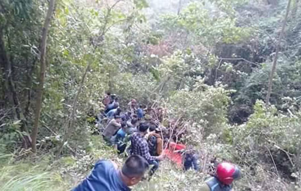 बस सडकबाट झण्डै तीन सय मिटर तल खसेको छ ।