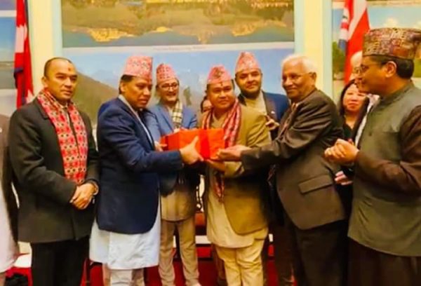 लन्डनस्थित नेपाली राजदूतावासमा आयोजित एक भव्य समारोहमा राजदूत डा. दुर्गाबहादुर सुवेदीले नौमती बाजाको धुनका साथ सेन्टरका अध्यक्ष रोहित गुरुङलाई हस्तान्तरण गरे । गत शनिबार २३ नोभेम्बर बिहान ९.३० बजे भएको कार्यक्रममा विशेष अतिथिहरुको स्वागत राजदूतावासका सम्पूर्ण कर्मचारीहरु संलग्न हुँदै समारोहको कार्यक्रम चुस्त र छरितो बनाइएको थियो ।