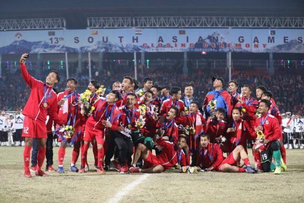 काठमाडौँ । पुरुष फुटबलमा भुटानलाई २-१ गोल अन्तरले हराउँदै नेपाल चौथो पटक साग च्याम्पियन बनेको छ । भूकम्पपछि पुनर्निर्माण गरिएको दशरथ रंगशालामा नेपालले मंगलबार नतिजा पक्षमा ल्याउन सफल भएको हो ।