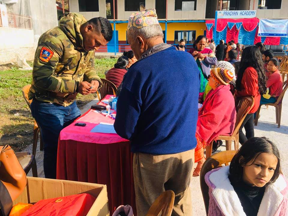 काठमाडौं । प्रज्ञान एकेडेमी र जनकल्याण सामाजिक केन्द्रले मधुमेह, मुटु रोग, नाक, कान, घाँटी तथा स्त्री रोग सम्बन्धी एक दिने निःशुल्क स्वास्थ्य शिविर गरेका छन् ।