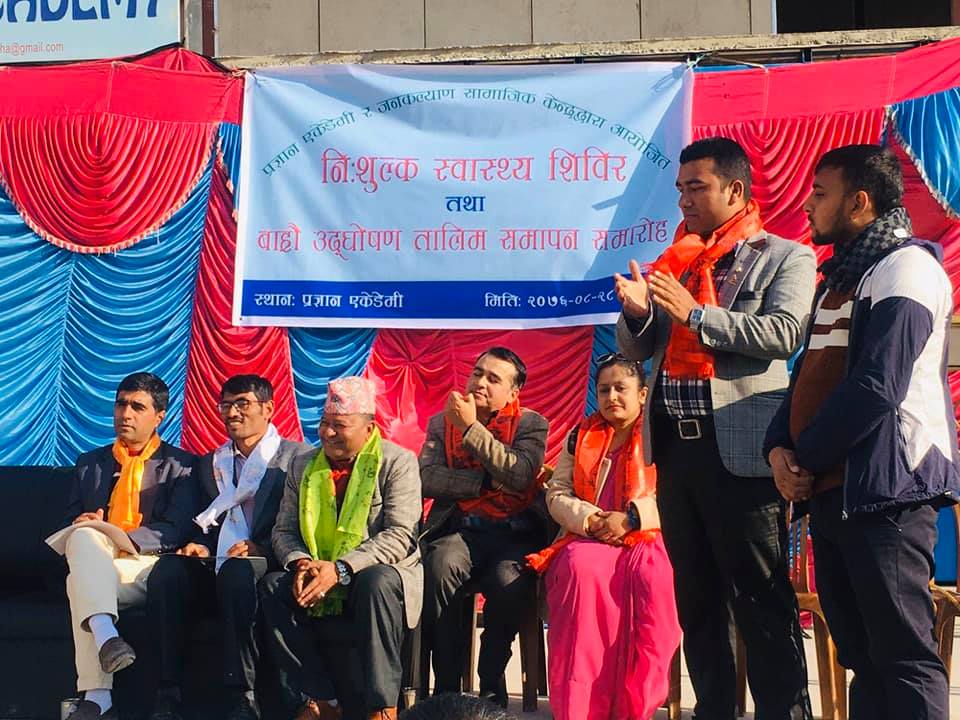 अध्यक्ष पाण्डेले नि:शुल्क स्वास्थ्य शिविर कार्यक्रम भव्यताका साथ सम्पन्न गर्न सहयोग गर्ने तथा उपस्थित सबैमा हार्दिक आभार प्रकट गरेका छन् ।