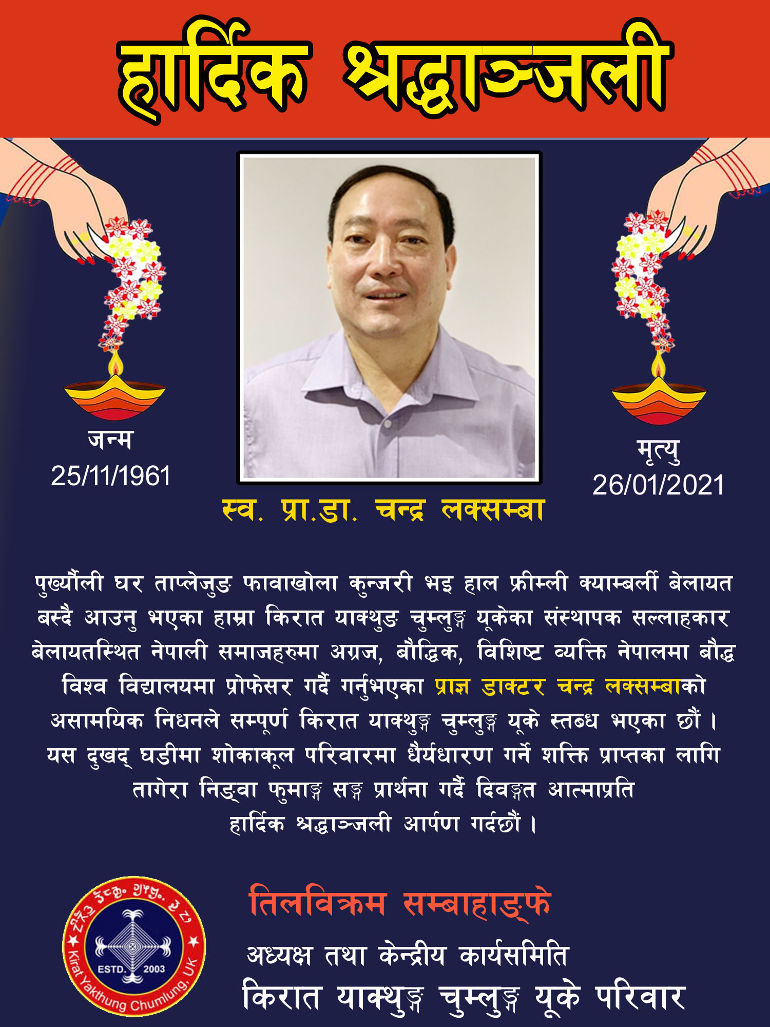 हार्दिक श्रद्धाञ्जली