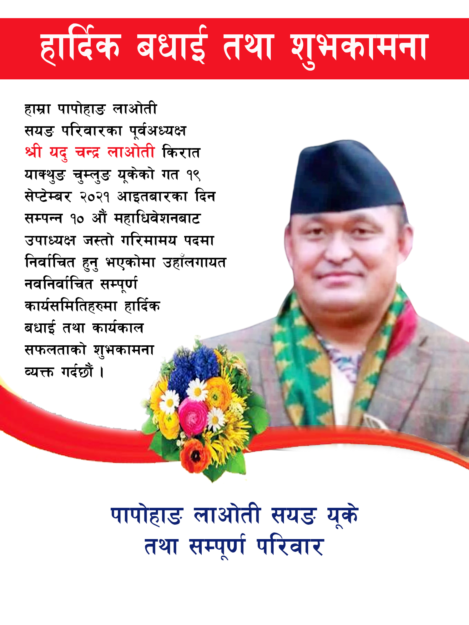 हार्दिक बधाई तथा शुभकामना: यदुचन्द्र लावती