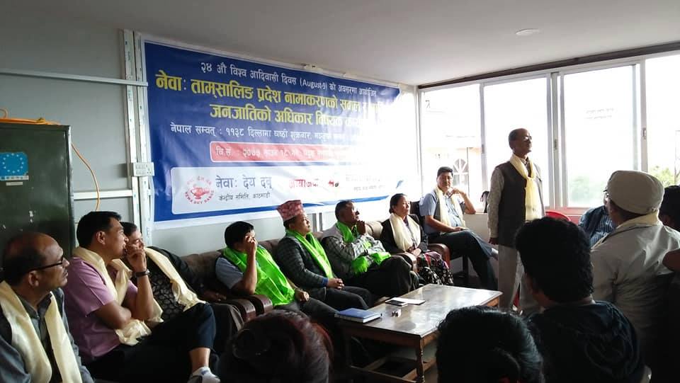 नेपाल तामाङ घेदुङ र नेवा देय दबूले शुक्रबार काठमाडौंमा आयोजना गरेको ‘नेवा: ताम्सालिङ प्रदेश नामकरणको सवाल र आदिवासी जनजातिको अधिकार विषयक कार्यक्रम’ का वक्ताहरुले पहिचानको आधारमा प्रदेश ३ को नामकरणको लागि आन्दोलनमा जानुको विकल्प नभएकोमा जोड दिएका हुन् । कार्यक्रममा बोल्दै नेकपा (क्रान्तिकारी माओवादी) नेता सीताराम तामाङले २४ औं विश्व आदिवासी दिवसको अवसरमै आन्दोलनको सुरुआत हुनुपर्ने बताए । उनले आफूहरुको ऐतिहासक, भाषा संस्कृति र बस्तोको पहिचान माग्दा नदिने खेल भइरहेको भन्दै सत्तामा बसेकाको दाह्र भत्काउने गरी आन्दोलन गर्नु पर्ने बताए ।
