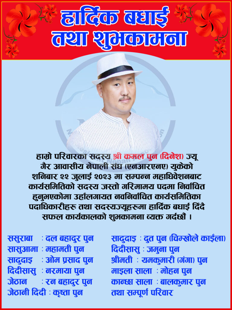 हार्दिक बधाई तथा शुभकामना : कमल पुनको परिवार