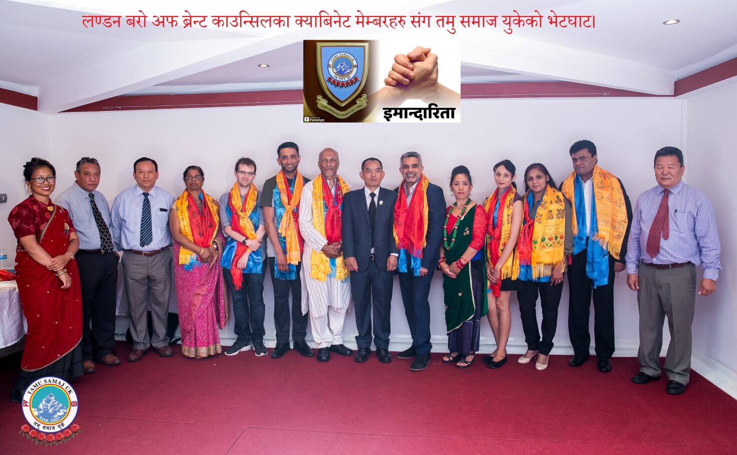 लण्डन। तमु समाज युकेले लन्डन बरो अफ ब्रेन्टका नव निर्बाचित काउन्सिलका क्याबिनेट मेम्बरहरु संग वेम्बली स्थित तमु समाज युके नेपलीज कम्युनिटि सेन्टरमा २७ जुलाई २०१८को साँझ भेटघाट गरेको छ। तमु समाज युकेका अध्यक्ष शिव चन्द्र गरुङको सभापतित्वमा महासचिब हर्क बहादुर गुरुङले संचालन गरेको भेटघाट कार्यक्रममा उपस्थित प्रमुख अतिथि लण्डन बरो अफ ब्रेन्टका काउन्सिल लिडर काउन्सिलर मोहमद बट, बिषेस अतिथिमा ब्रेन्टका निबर्तमान मेयर काउन्सिलर भगवानजि चौहान र अन्य अतिथिहरुमा काउन्सिलर जेम्स अलि, काउन्सिलर सकिब बट, काउन्सिलर त्रुप्ति संगानि, काउन्सिलर क्रुपा सेठ र काउन्सिलर थोमस स्टेफेनलाई समाजका अध्यक्ष शिव चन्द्र गुरुङ, संस्थापक अध्यक्ष चित्र बहादुर गुरुङ, आमा समुहका अध्यक्ष बिन्दु घले र पुर्ब अध्यक्ष शिवशरण गुरुङले खादा लगाई स्वागत गरि बधाई दिदै भेटघाट गरेको थियो।कार्यक्रममा निबर्तमान मेयर तथा काउन्सिलर भगवनजि चौहानका धर्मपत्नि र काउन्सिलर त्रुप्ति संगाईका पति पनि उपस्थित थिए। कार्यक्रमका संचालक तथा महासचिबले प्रारम्भमा हेल्थ एण्ड सेफ्टी सम्बन्धी जानकारि र त्यसपछि अतिथिहरुको संक्षिप्त परिचय बताउदै समाजको तर्फबाट नव निर्बाचित काउन्सिलरहरुलाई सफल कार्यकालको शुभकामना सहित हार्दिक बधाई पनि ज्ञापन गरेका थिए।भेटघाट कार्यक्रममा तमु समाज युकेका उपाध्यक्ष शिव कुमार गुरुङले उपस्थित काउन्सिलरहरुलाई संस्थाको संक्षिप्त परिचय सहित तमु समाज युके नेपलिज कम्युनिटि सेन्टरको रिनोभेसन कार्य, संचालन, ब्यबस्थापन र प्रयोगको बारेमा श्रब्य चित्र र पावर पोईन्ट बाट बृस्त्रृत जनाकरि गराएका थिए। कार्यक्रममा समाजका अध्यक्ष शिव चन्द्र गुरुङले धन्यबाद मन्तब्य राख्नु भएको थियो। उक्त अबसरमा तमु समाज युकेले आयोजना गरेको स्वागत तथा भेटघाट कार्यक्रममा सहभागी हुन पाउदा लण्डन बरो अफ ब्रेन्टका काउन्सिल लिडर कउन्सिलर मोहमद बट, निबर्तमान मेयर काउन्सिलर भगवानजि चौहान लगायत सबै अतिथि काउन्सिलरहरुले अत्यन्त खुशि ब्यक्त गर्दै तमु समाज युकेलाई आभार सहित हार्दिक कृतज्ञता ब्यक्त गरेका थिए।भेटघाट कार्यक्रमको मन्तब्त राख्नेा क्रममा सबै अतिथिहरुले ब्रेन्ट काउन्सिलको कम्यनिटि ऐसेट ट्रान्सफर योजना अन्तरगत समाजले प्राप्त गरेको तमु समाज युके नेपलिज कम्युनिटि सेन्टरको रिनोभेसन कार्य, यसको संचालन, ब्यबस्थान र प्रयोग बाट अत्यन्त प्रभाबित हुँदै यस सेन्टरबाट तमु समाज युके लगायत लोकल कम्युनिटिहरु तथा नेपलिज कम्युनिटिहरुले प्राप्त गरेको फाईदा र यस सेन्टरको संचालनबाट आम जनमानास र समाजमा परेको सकरात्मक प्रभावको प्रसंशा गर्दै तमु समाज युकेलाई हार्दिक बधाई तथा शुभकाम