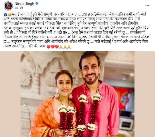 नेपाली नायीका निरुता सिंहले बिहे गरेकी छिन् । उनले आफूले बिहे गरेको तस्वीर सामाजिक सञ्जालमार्फत सार्वजनिक गरेकी छन् ।
