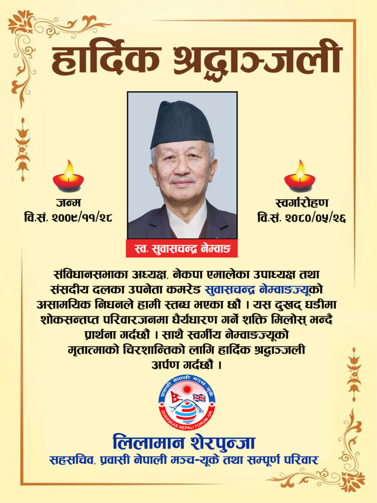 हार्दिक श्रद्धाञ्जली: सुभासचन्द्र नेम्वाङ (लिलामान शेरपुन्जाबाट)
