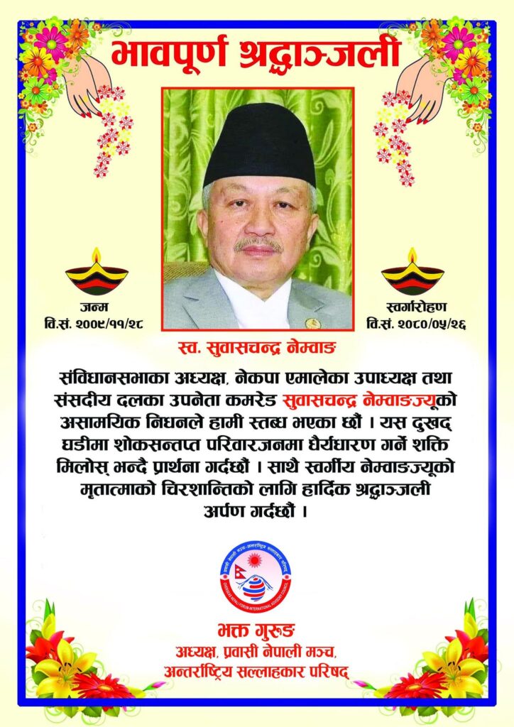 हार्दिक श्रद्धाञ्जली: सुभासचन्द्र नेम्वाङ (भक्त गुरुङबाट)