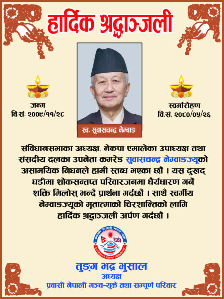 हार्दिक श्रद्धान्जली: कमरेड सुबास चन्द्र नेम्बाङ (तुङ्ग भद्र भुसालबाट)