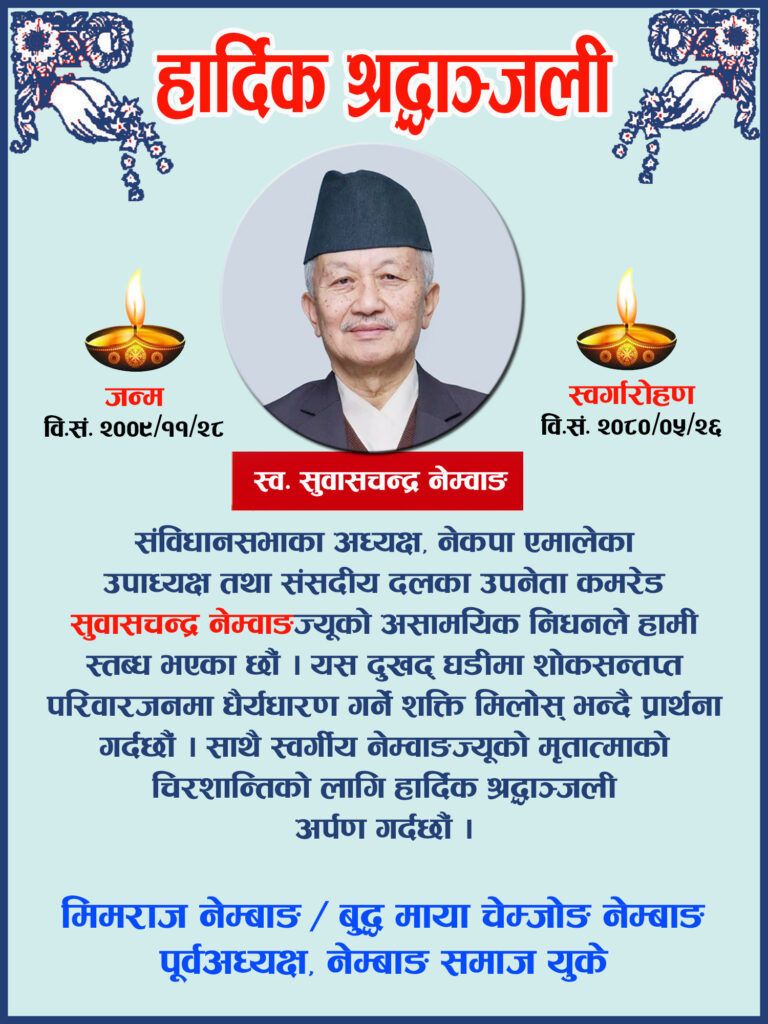 हार्दिक श्रद्धाञ्जली: पुर्वअध्यक्ष मिमराज नेम्वाङ / बुद्धमाया चेम्जोङ नेम्वाङ नेम्वाङ समाज युकेबाट