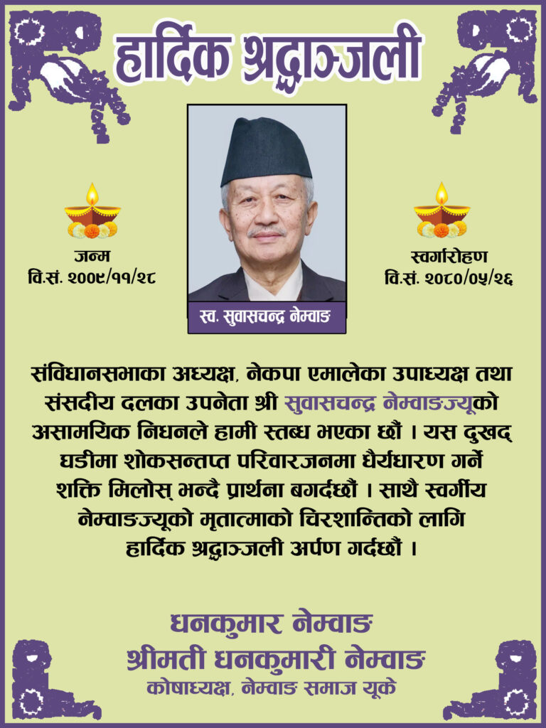 हार्दिक श्रद्धाञ्जली: धनकुमार नेम्वाङ / श्रीमती धनकुमारी नेम्वाङबाट