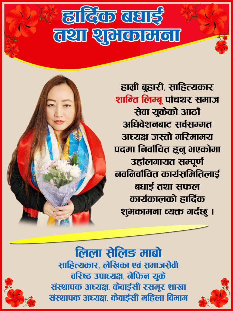 शान्ति लिम्बू हार्दिक बधाई : लिला सेलिङ माबोबाट