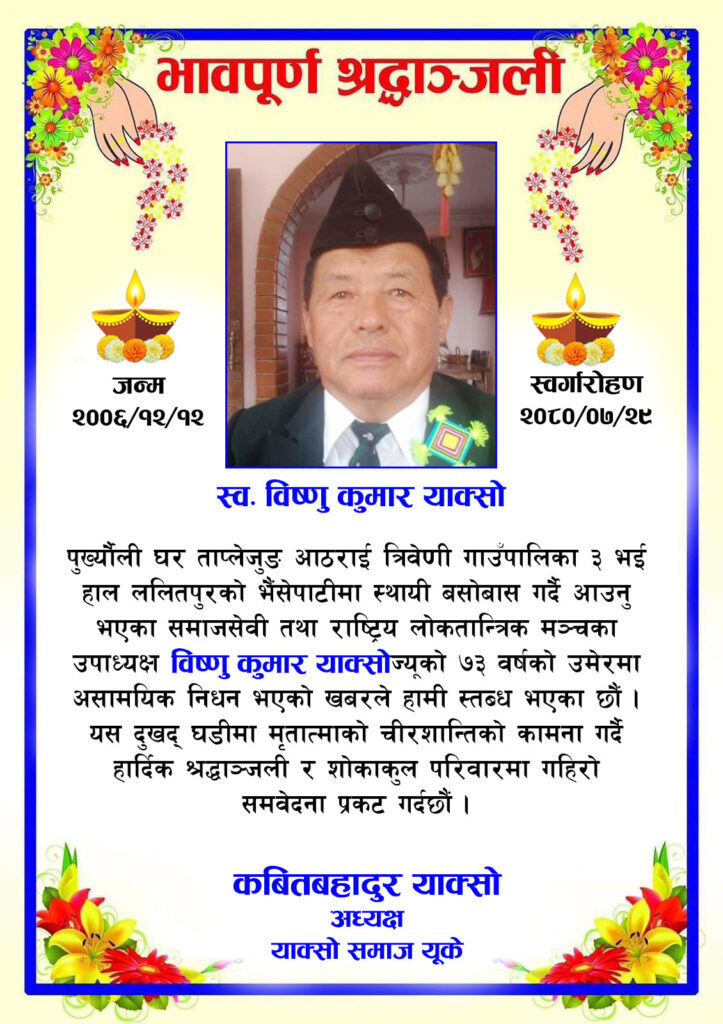 भावपूर्ण श्रद्धाञ्जली : विष्णु कुमार याक्सो