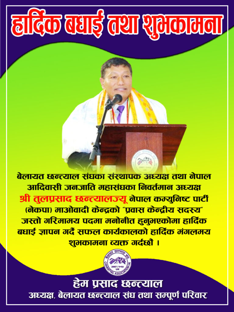 हार्दिक बधाई तथा शुभकामना : तुलप्रसाद छन्त्याल