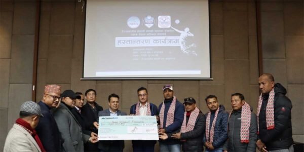 एनआरएनएको सचिवालयमा एनआरएनए स्पोर्टस एकेडेमीले मंगलबार गरेको कार्यक्रममा अध्यक्ष डा. बद्री केसीले नेपाल भलिबल संघका अध्यक्ष जीतेन्द्र बहादुर चन्दलाई चेक हस्तान्तरण गरेका हुन् ।