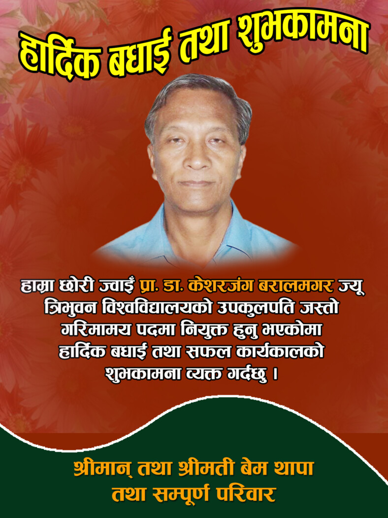 हार्दिक बधाई तथा शुभकामना : प्राडा केशरजंग बरालमगर [बेम थापाबाट]