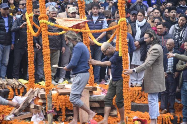 पशुपतिस्थित आर्यघाटमा मंगलबार अपरान्ह आचार्यका छोराद्वय सत्यराज र स्वरूपराज आचार्यले उनको पार्थिव शरीरमा दागबत्ती दिएका थिए ।