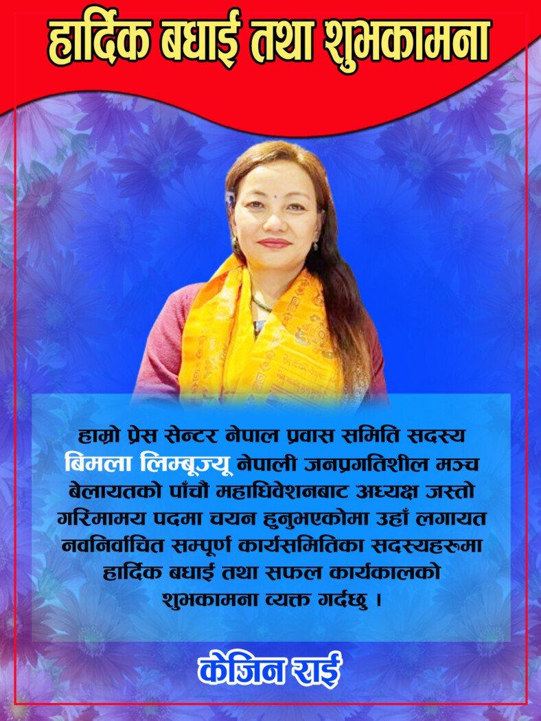 हार्दिक बधाई तथा शुभकामना : बिमला लिम्बू (केजिन राईबाट)