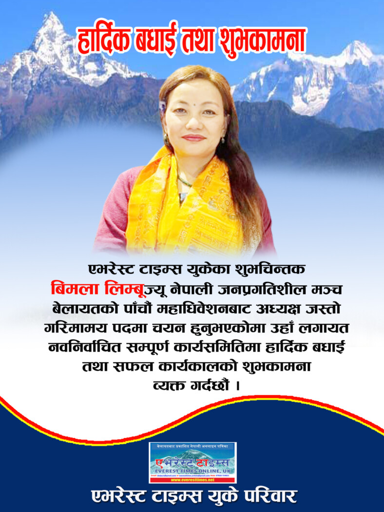 हार्दिक बधाई तथा शुभकामना : बिमला लिम्बू (एभरेस्ट टाइम्सबाट)
