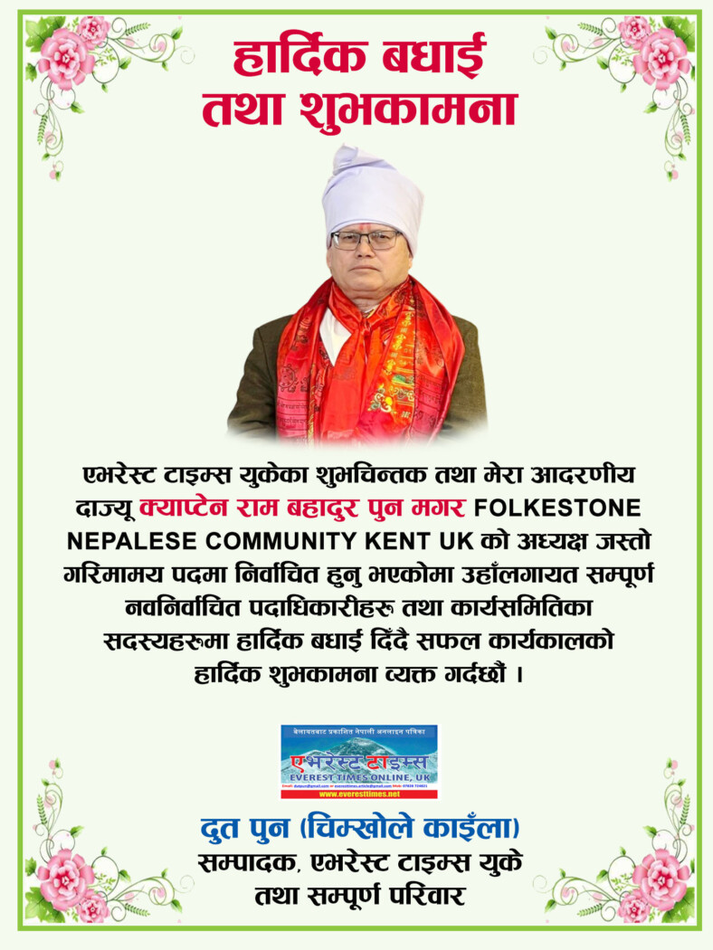 हार्दिक बधाई तथा शुभकामना : क्याप्टेन राम बहादुर पुन मगर