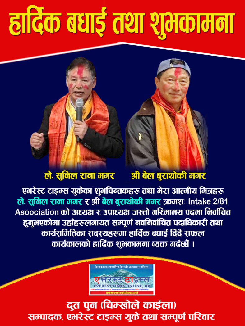 हार्दिक बधाई : ले‍. सुनिल राना मगर र बेल बुराथोकी मगर