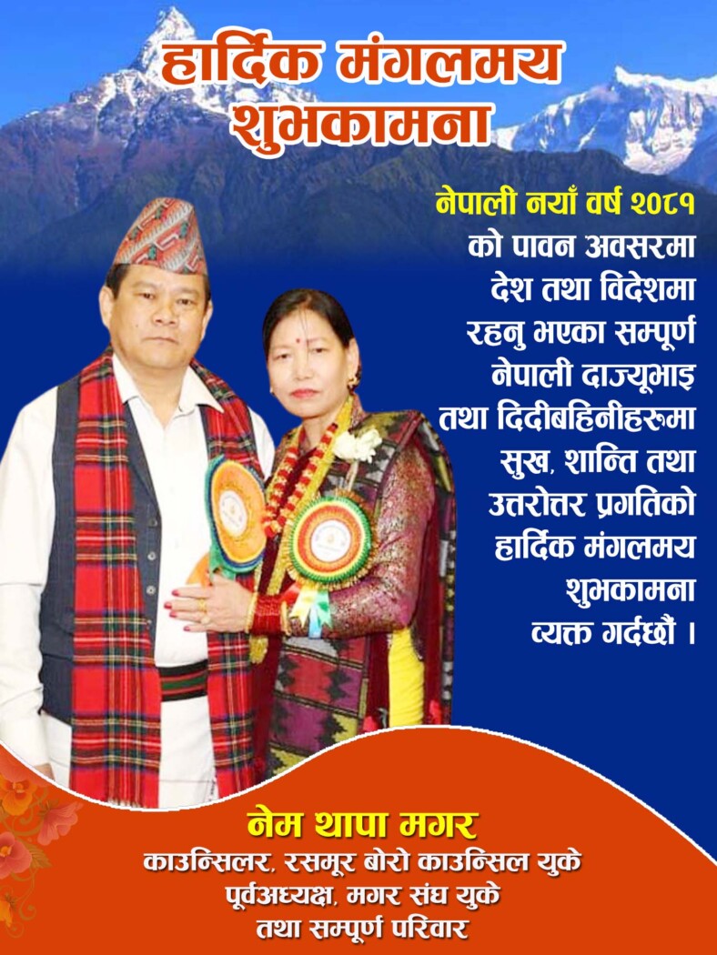 नेपाली नयाँ बर्ष २०८१ को हार्दिक मंगलमय शुभकामना: काउन्सिलर नेम थापा मगर