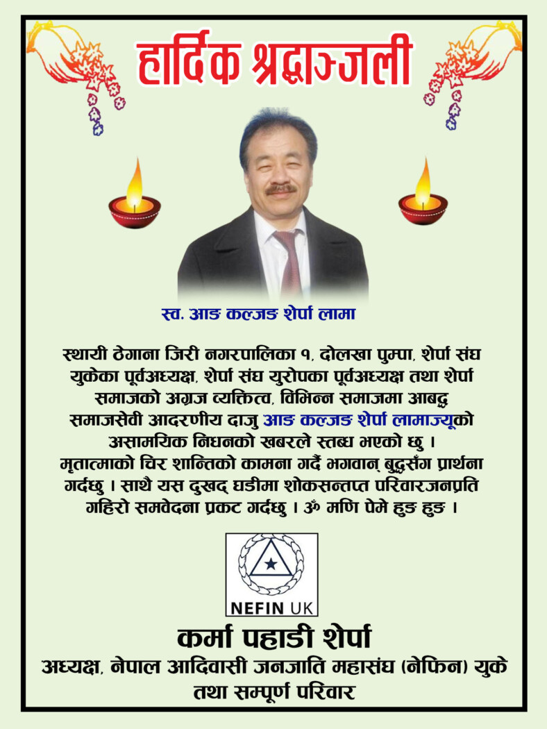 हार्दिक श्रद्धाञ्जली : आङ कल्जंज शेर्पा लामा