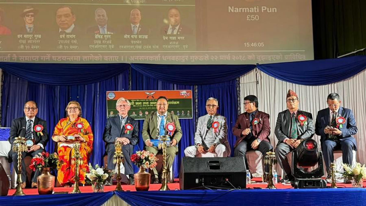 प्रमुख अतिथी एनआरएनए यूके प्रमुख संरक्षक डेभिड गुरुङले एक अर्कामा आरोप प्रत्यारोपको सट्टा मिलेर समस्या समाधानमा लाग्न सुझाव दिए । उनले गोर्खा मुद्दामा नेपाल सरकार सुतेर बसेको आरोप लगाउँदै उस्तै परे सिंहदरबार घेर्न पनि तयार हुनुपर्ने धारणा राखे ।