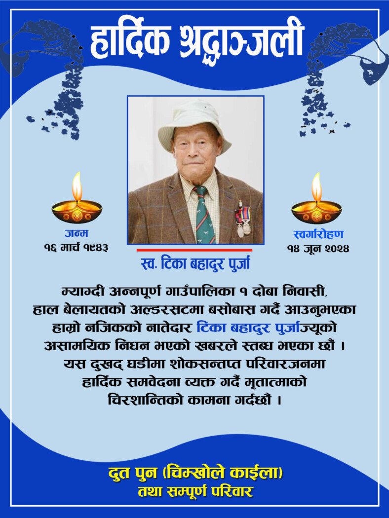 हार्दिक श्रद्धान्जली: टिका बहादुर पुर्जा