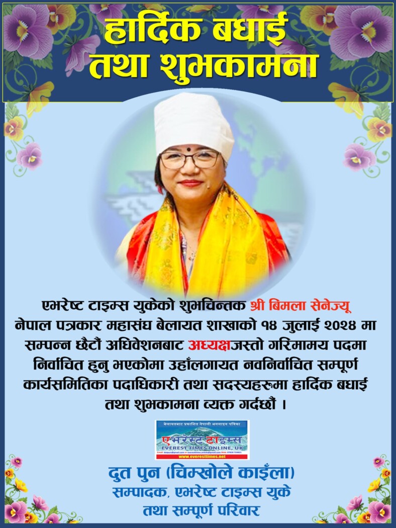 हार्दिक बधाई तथा शुभकामना: श्री बिमल सेने