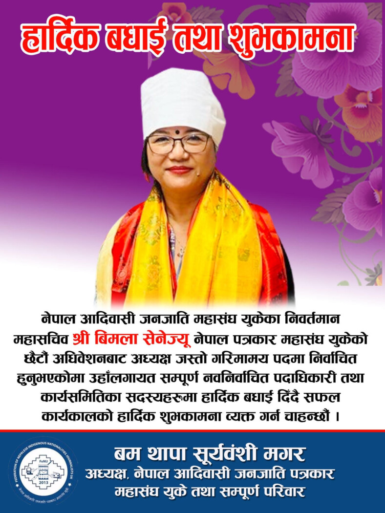 हार्दिक बधाई तथा शुभकामना: बिमला सेने