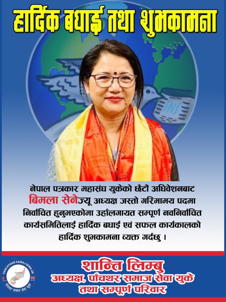 हार्दिक बधाई तथा शुभकामना:विमला सेने