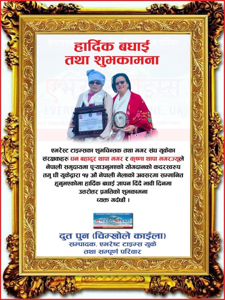 हार्दिक बधाई तथा शुभकामना: घन र कृष्ण थापामगर