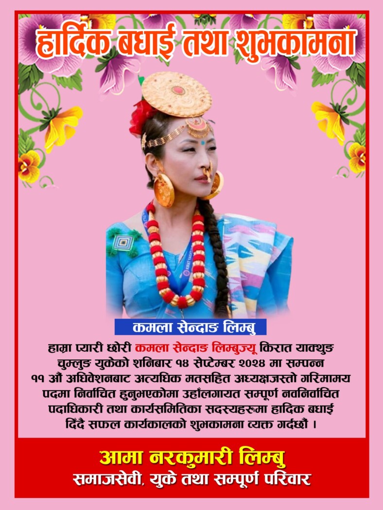 हार्दिक बधाई तथा शुभकामना : कमला सेन्दाङ लिम्बू