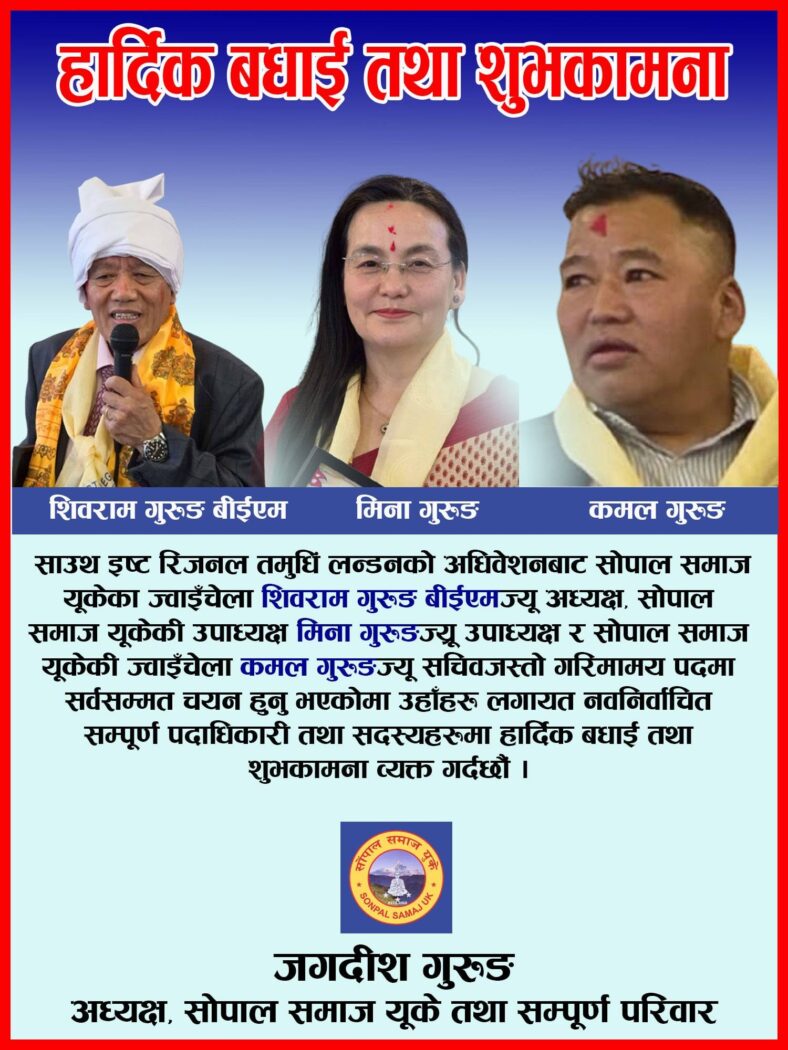 हार्दिक शुभकामना: शिवराम गुरुङ एमबिइ, मिना गुरुङ र कमल गुरुङ