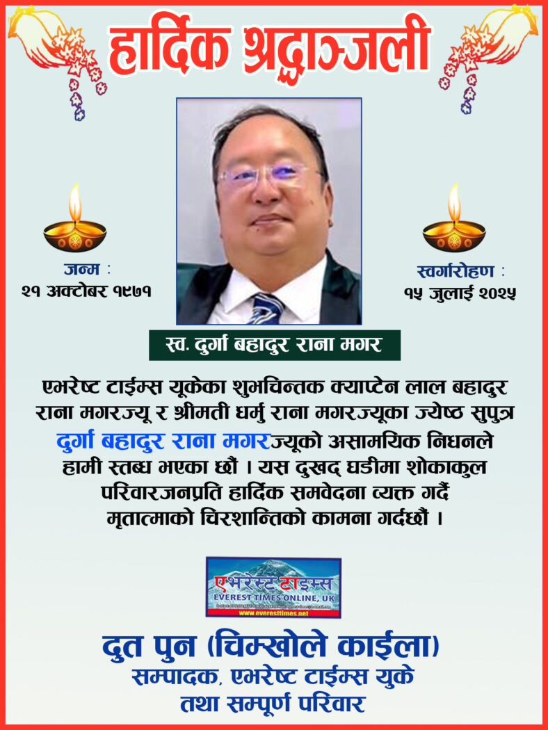 हार्दिक श्रद्धाञ्जली : दुर्गा बहादुर राना मगर