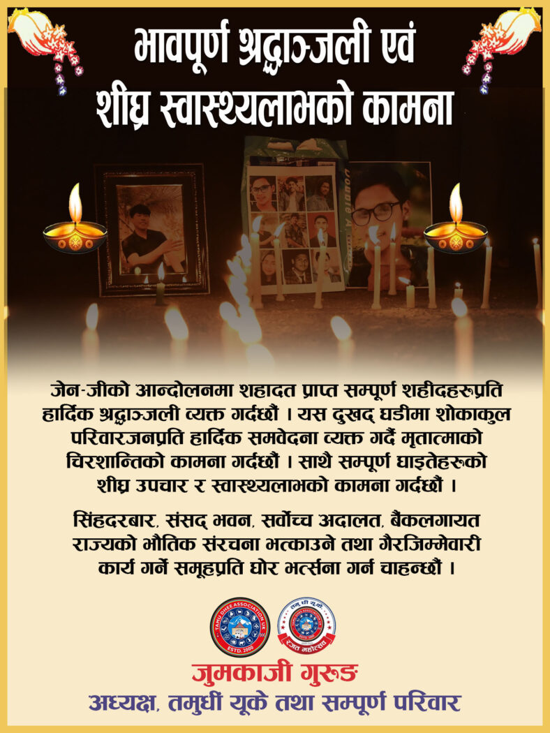 भावपूर्ण श्रद्धाञ्जली एवं शीघ्र स्वास्थ्यलाभको कामना