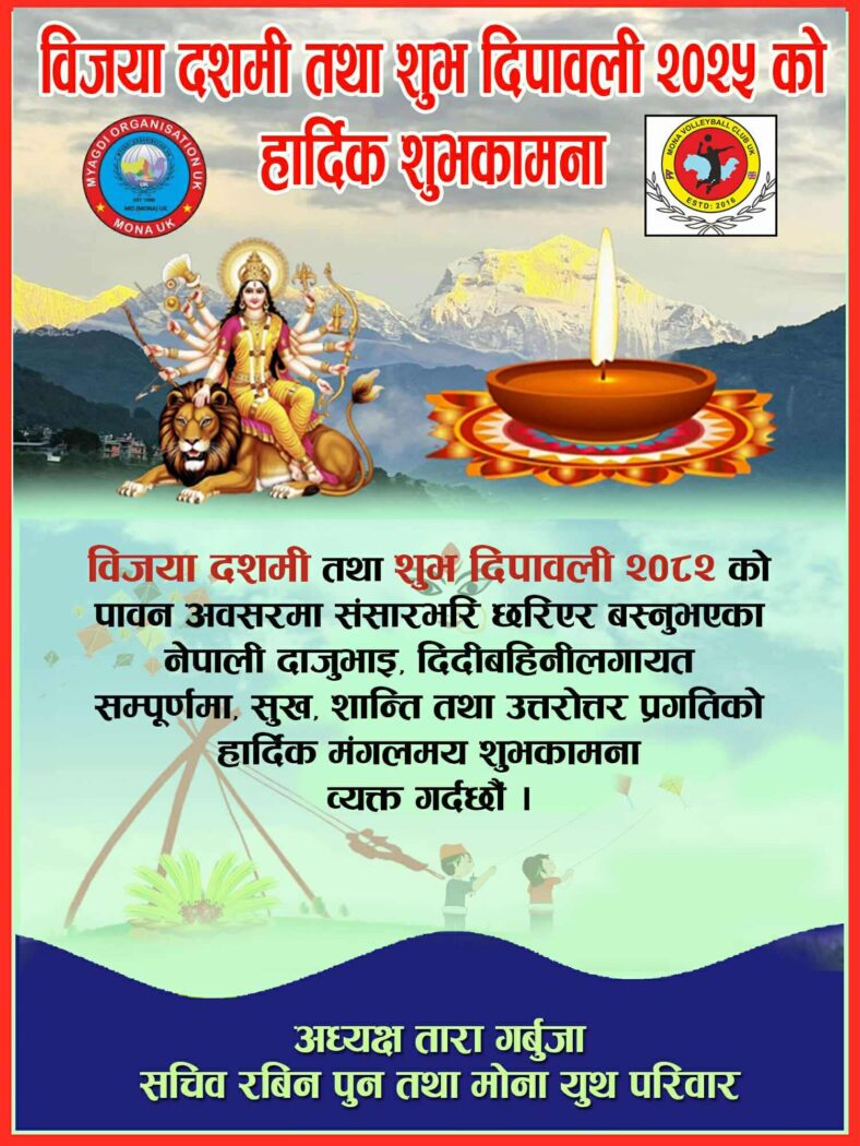 विजय दशमी तथा शुभ दिपावलीको २०२५ को हार्दिक शुभकामना: तारा गर्बुजा पुन मगर र रबिन पुन मगर