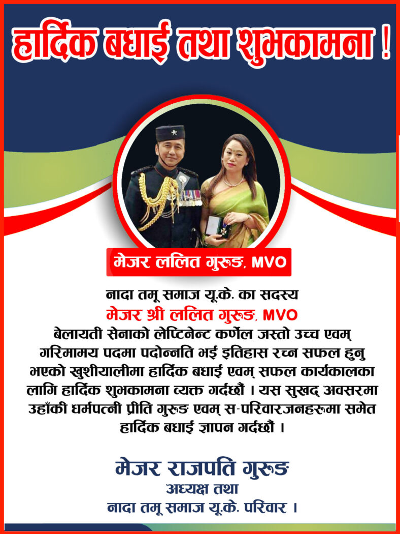 हार्दिक बधाई तथा शुभकामना : मेजर श्री ललित गुरुङ MVO