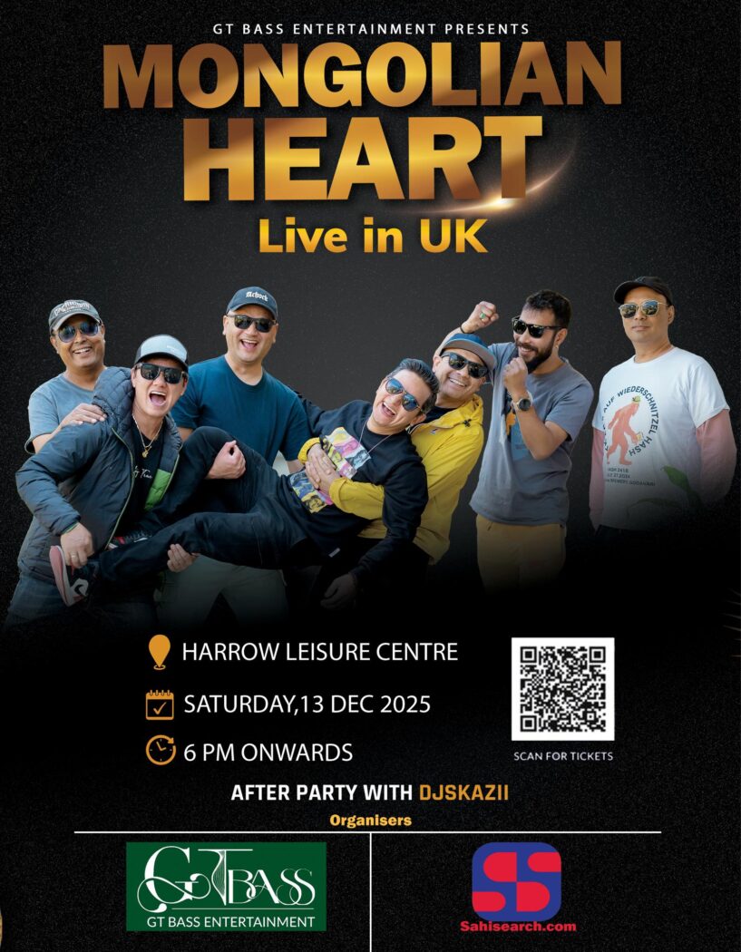 चर्चित नेपाली ब्याण्ड मंगोलियन हर्ट आगामी १३ डिसेम्बर २०२५, शनिबार लन्डनको ह्यारो लेजर सेन्टरमा धमाकेदार प्रस्तुति दिन तय भएको छ। जीटी बास इन्टरटेन्मेन्टद्वारा प्रस्तुत यो बहुप्रतिक्षित कन्सर्ट यस वर्षको महत्वपूर्ण अन्तर्राष्ट्रिय उपस्थितिमध्ये एक मानिएको छ। यहि १० डिसेम्बर २०२५ मा ब्याण्ड सम्पुर्ण सदस्य हरु लन्डन आइ पुग्ने छ