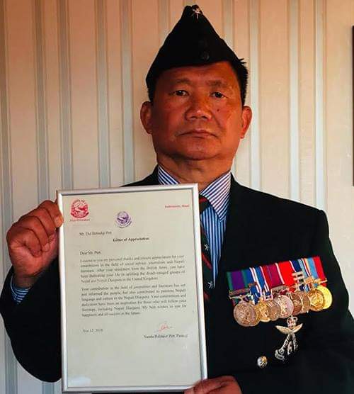 काठमाडौं । म्याग्दी रघुगंगा गाउँपालिका वडा नं. ७ चिमखोला घर भई हाल बेलायतमा बसोबास गर्दै आएका समाजसेवी, पत्रकार तथा साहित्यकार दुत पुन (चिम्खोले काइँला) नेपालका उपराष्ट्रपति नन्दबहादुर पुन (पासाङ) द्वारा सम्मानित भएका छन् ।
