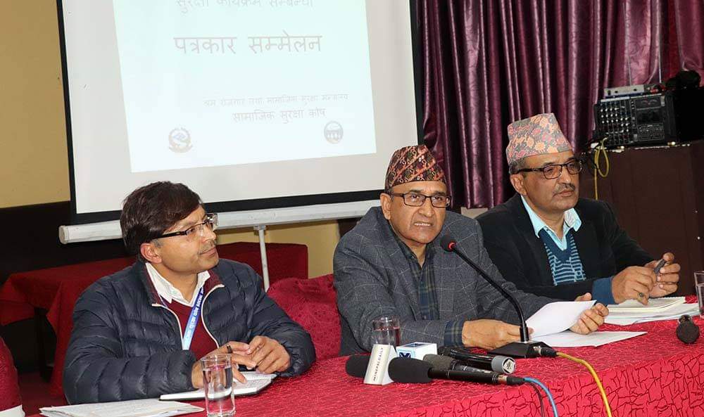 काठमाडौँ । आर्थिक तथा सामाजिक रुपमा जोखिममा रहेका नागरिकको सुरक्षाका लागि सरकारले निवृत्तिभरणसहितको योगदानमा आधारित सामाजिक सुरक्षा कार्यक्रम ल्याउने घोषणा गरेको छ । नेपालको संविधानको धारा ३४ ले प्रत्येक श्रमिकलाई उचित पारिश्रमिक, सुविधा तथा योगदानमा आधारित सामाजिक सुरक्षाको हक सुनिश्चित गरेकाले सामाजिक सुरक्षा योजना कार्यान्वयनमा ल्याइन लागेको श्रम, रोजगार तथा सामाजिक सुरक्षा मन्त्रालयले जनाएको छ ।