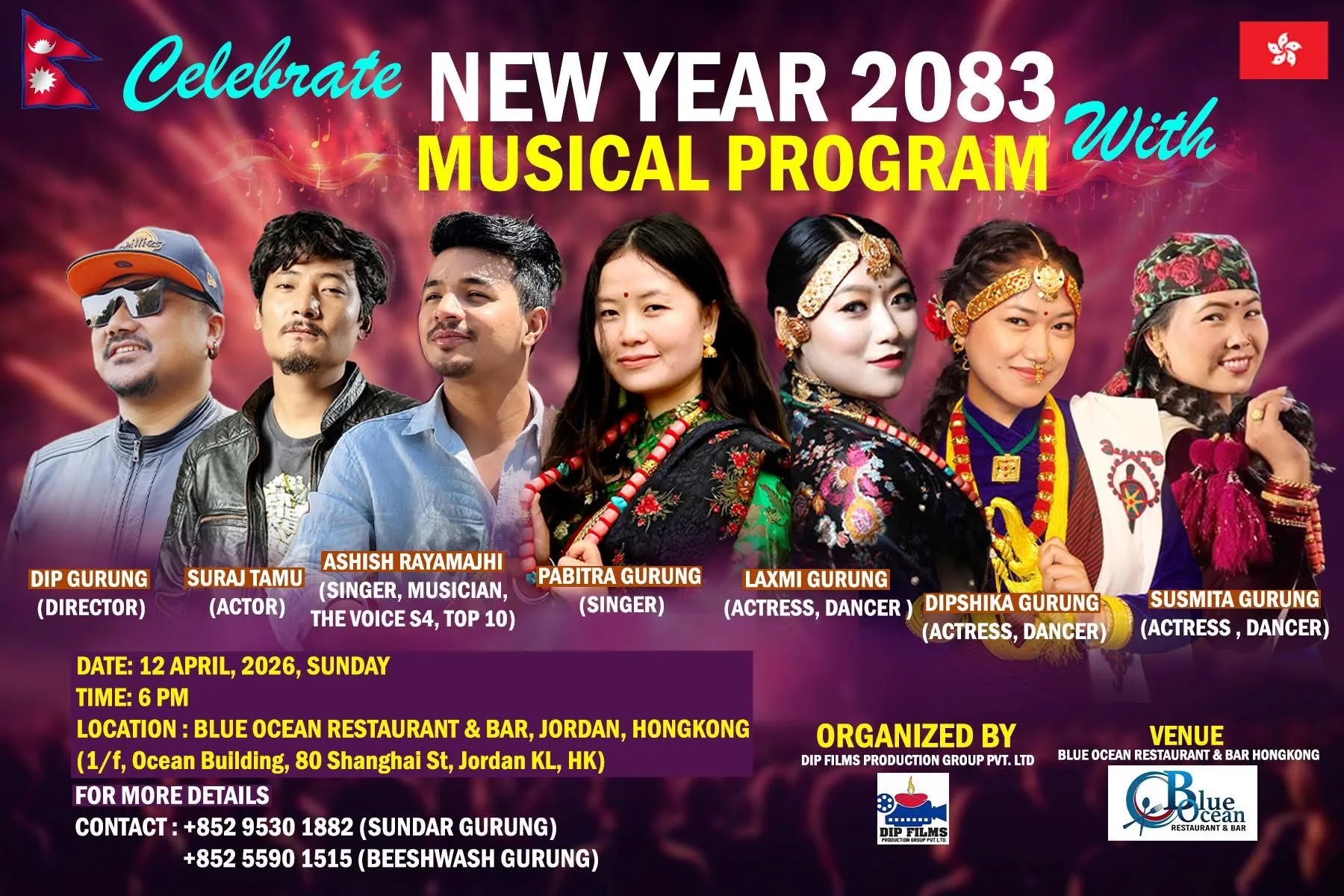 हङकङमा बसोबास गर्ने नेपाली समुदायलाई लक्षित गर्दै New Year 2083 Musical Program आयोजना हुने भएको छ। नयाँ वर्ष २०८३ को अवसरमा विशेष सांगीतिक तथा सांस्कृतिक कार्यक्रम आगामी १२ अप्रिल २०२६ (आइतबार) साँझ ६ बजे आयोजना गरिने कार्यक्रम आयोजकले जनाएको छ।